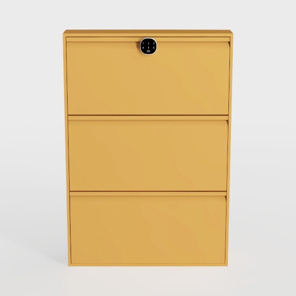 Inspired by minimalist functionality and warm contemporary design, this three-drawer cabinet features a smooth, warm mustard finish that catches light softly. Clean lines create a calm, inviting presence, ideal for a modern bedroom or study, pairing beautifully with wooden accents and soft linen textiles. Three spacious drawers offer ample storage, while the integrated digital lock adds a secure, sleek touch to daily use.