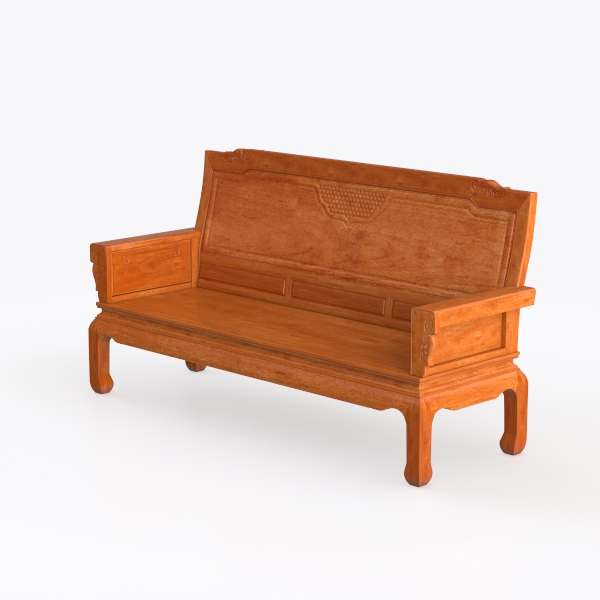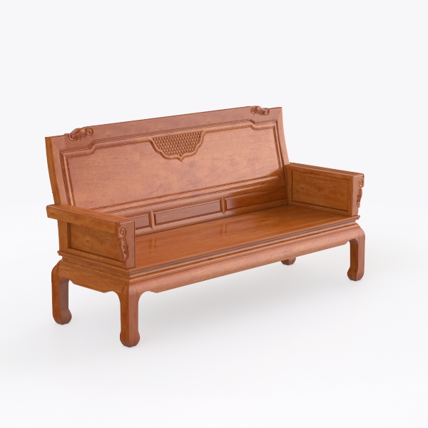 The bench’s surface is smooth and polished, offering a tactile contrast between the cool, smooth wood and the soft, inviting feel of its upholstered seat (if applicable, but since it’s a 3D model, maybe just the wood). Visually, it exudes timeless elegance, with its neutral, earthy hue complementing both classic and contemporary settings.