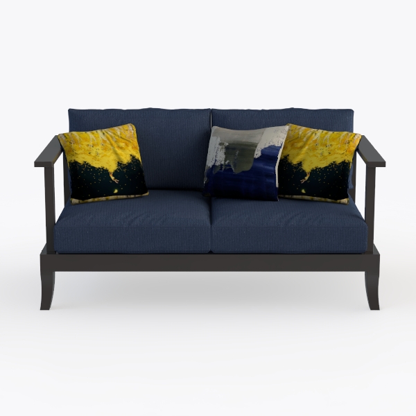 This sofa takes design cues from the serene interplay of urban minimalism and natural coastal vibes, with its deep indigo upholstery mirroring the soft glow of twilight over water, while the warm, matte-finished wood frame adds a grounded, earthy contrast. The textured linen-like fabric feels surprisingly plush yet lightweight to the touch, inviting you to sink in for extended relaxation, while the two vibrant yellow-and-charcoal geometric-patterned cushions and a soft blue-gray centerpiece infuse the space with artistic energy—balancing boldness and calm. Its clean, uncluttered silhouette and tapering, sturdy legs make it a standout in contemporary living rooms or sunlit nooks: pair it with marble coffee tables with brass accents, a jute rug, and floor-to-ceiling linen curtains to elevate the look, blending modern elegance with coastal warmth. Generous seat depth, paired with high-density foam padding, offers exceptional support, while wide, curved armrests cradle elbows comfortably, making it perfect for lazy weekends or casual get-togethers. Every detail, from the fabric’s subtle sheen to the wood’s rich grain, comes together to create a piece that feels both stylish and deeply comforting.