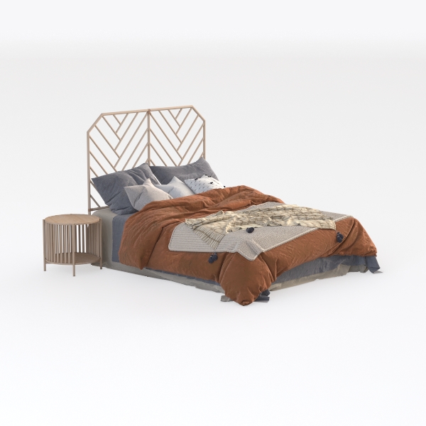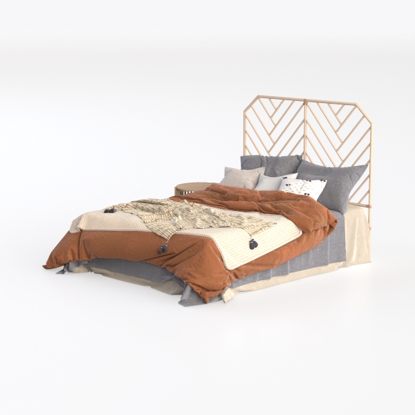 Inspired by geometric latticework, the headboard blends mid-century charm with modern simplicity. The warm terracotta duvet, textured weave, and soft gray linens create a tactile, inviting feel, while the woven throw adds coziness. Ideal for Scandinavian or bohemian bedrooms, it pairs with natural wood nightstands and potted plants. The spacious headboard offers gentle support, ensuring style and comfort for restful nights.
