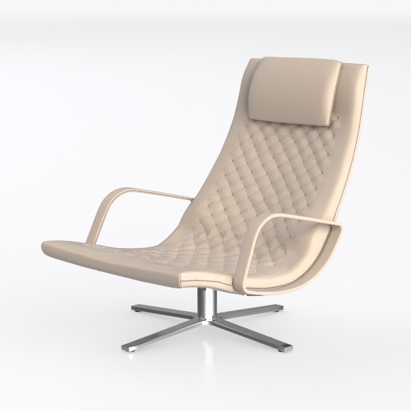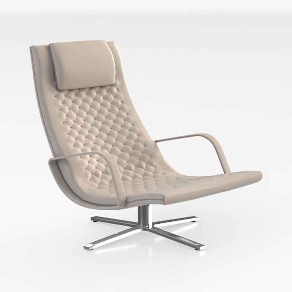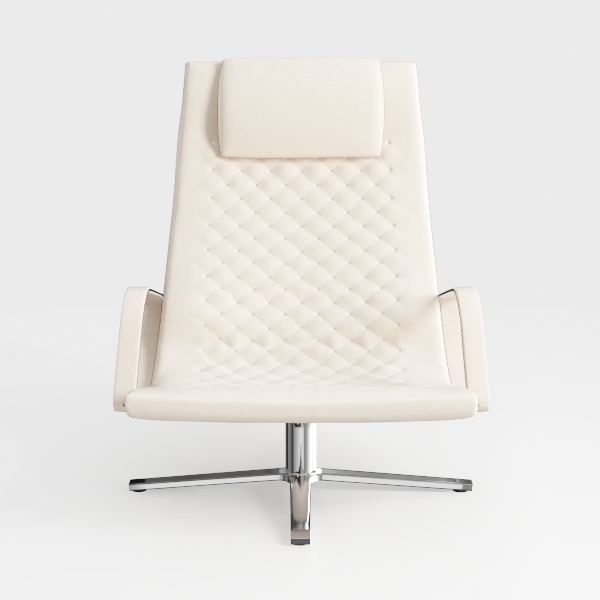 Inspired by mid-century modern design, this lounge chair features soft, textured upholstery in luminous white, with diamond-quilted details for subtle elegance. Its clean lines and sleek metal base blend modern minimalism, ideal for a contemporary living room, pairing with marble side tables and neutral rugs. Generous seat depth and swivel functionality enhance comfort and practicality.