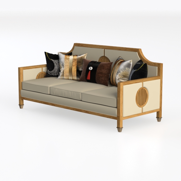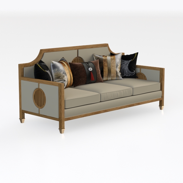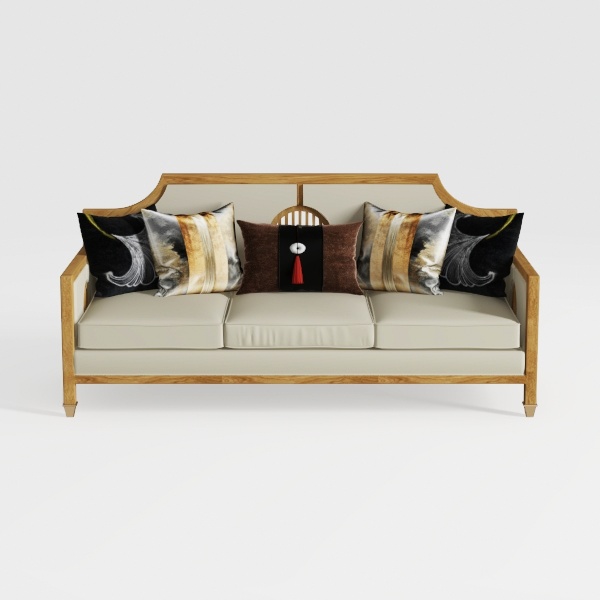 This sofa embodies a harmonious blend of traditional craftsmanship and modern design. Drawing inspiration from classic Asian furniture, its gently curved backrest, shaped with a warm wood frame showcasing natural grain patterns, reinterprets heritage aesthetics through a contemporary lens, creating a piece that feels both timeless and fresh.