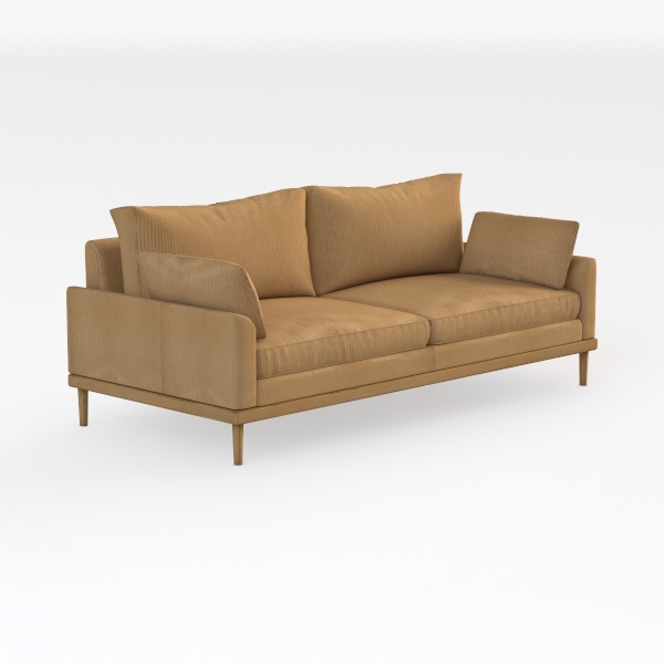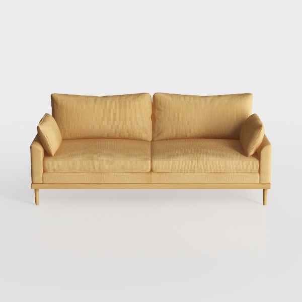 Beyond its aesthetic allure, the sofa prioritizes comfort. A generously sized seat depth offers ample room to sink into, while the subtly structured backrest and two plump, detachable cushions provide perfect lumbar support. The washable fabric ensures easy upkeep, making it ideal for busy households, while the lightweight wooden legs keep the piece feeling open and unburdened—proving that style and functionality can coexist seamlessly.