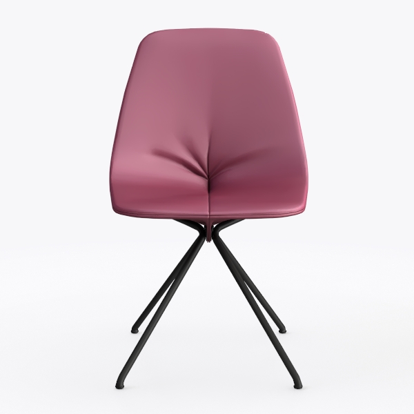 Designed with mid-century minimalism in mind, this chair merges soft curves and geometric precision. The smooth, supple pink leather seat offers a tactile contrast to its sleek black metal cross legs, blending warmth and modernity. Perfect for modern dining rooms or minimalist living areas, it pairs beautifully with marble tables and wooden sideboards. Its contoured backrest ensures ergonomic comfort, while the sturdy frame guarantees lasting durability.
