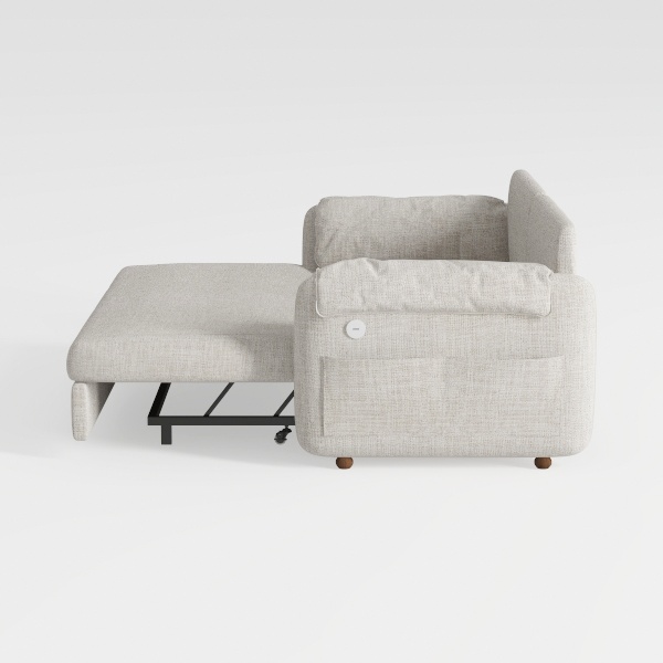 Pull Out Sofa Bed Padded Upholstered Sofa Bed, Linen Fabric 3 Seater Couch with Storage Chaise and Cup Holder