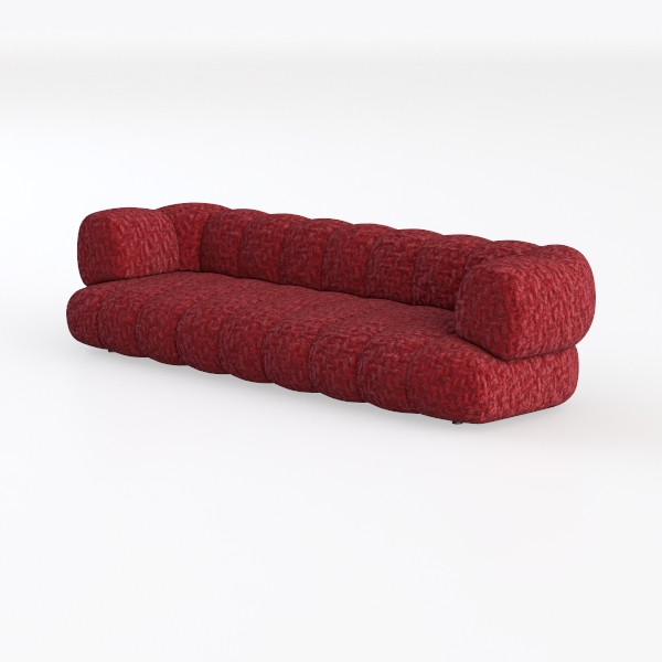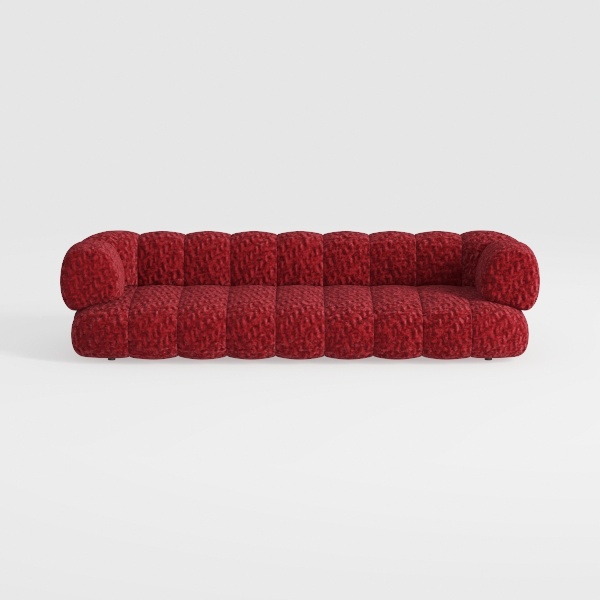 Visually, the sofa commands attention with its deep, crimson hue—a vibrant pop that infuses any room with energy, yet its plush, rounded silhouette keeps it approachable. The fabric feels surprisingly lightweight to the touch, with a velvety softness that invites relaxation, while the uniform padding ensures no sharp edges disrupt the flow, making it both visually cohesive and physically comforting.