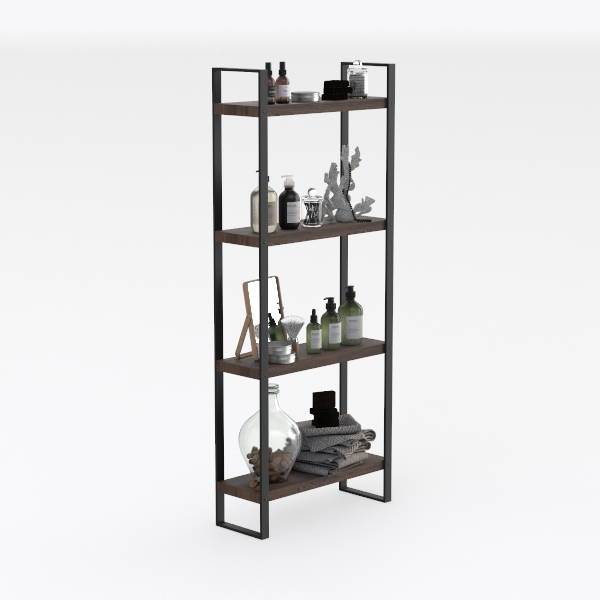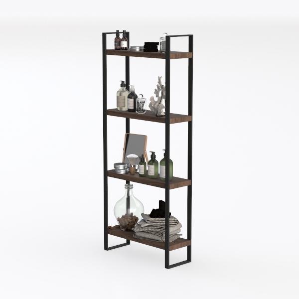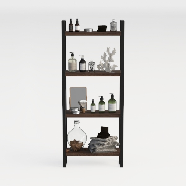 Inspired by the blend of natural textures and industrial minimalism, this multi-tiered shelf pairs warm wooden planks with sleek black metal frames. Layered to hold toiletries, folded towels, and decor like coral or wooden chunks, it merges functionality with a cozy, organic feel. Ideal for a bathroom or bedroom, it balances modern edge and natural warmth, with sturdy construction ensuring ample space for daily essentials.