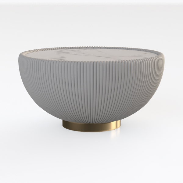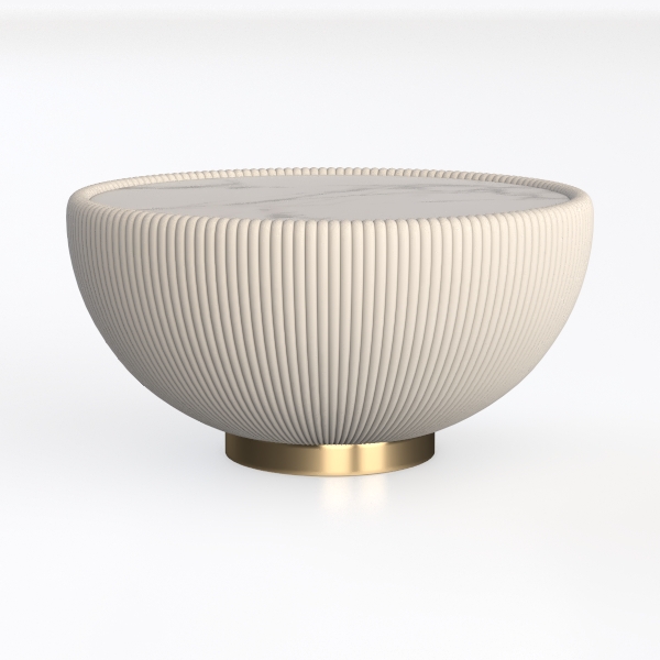 Crafted with organic curves inspired by natural shells, this coffee table blends softness and elegance. The matte white ceramic base features gentle vertical ridges, while the top showcases veined marble—cool, smooth, and warm. Its minimalist design, with a sleek gold base, elevates modern-luxury living rooms, pairing with metallic lamps, velvet sofas, and geometric rugs. The round shape saves space, and the stable base holds books, cups, and more, balancing style and practicality.