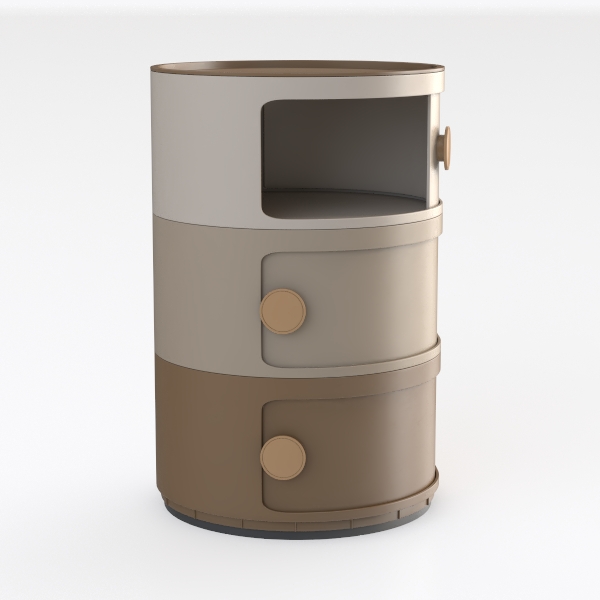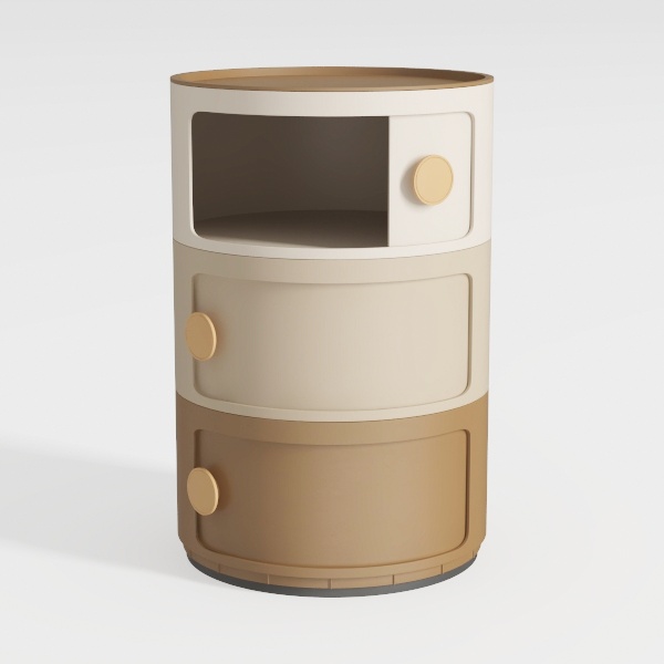 Inspired by organic curves and geometric balance, this piece features soft earthy tones—beige, light and deep brown—with gold circular handles. Its smooth surface and rounded edges offer a warm touch, while layered design creates visual harmony. Perfect for a modern bedroom, pair it with wooden headboards and linen bed linens to infuse cozy modern charm. The top open shelf holds scented candles, middle drawer stores small items, and the bottom closed space provides hidden storage, meeting daily organizing needs.