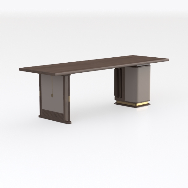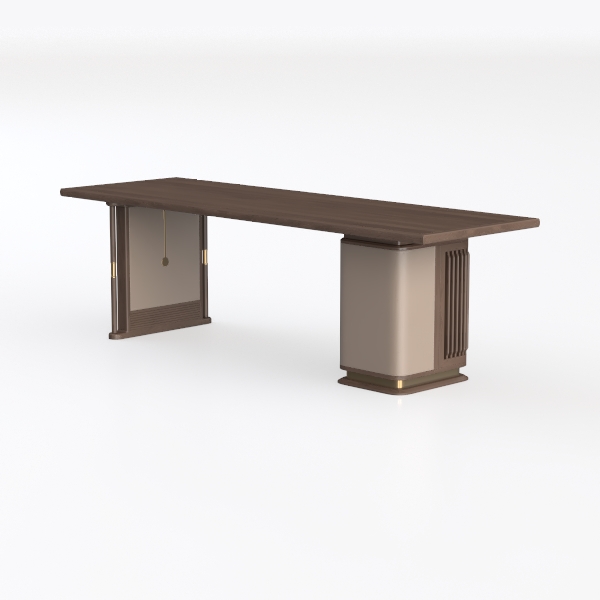 Inspired by the balance of natural textures and modern minimalism, this piece blends warm wood grain with cool metallic accents and a soft neutral panel. The smooth, tactile wooden top contrasts gently with the sleek, weighted base, creating a clean yet layered look with flowing lines. Ideal for a modern living room or home office, it pairs beautifully with leather sofas or glass side tables, offering a spacious surface for reading or work with a stable, comfortable base.