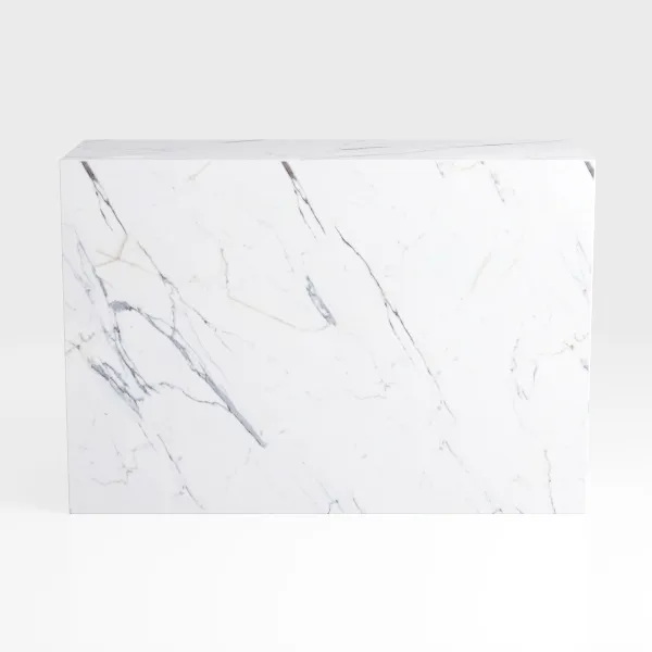 Inspired by natural marble's organic veining and minimalist design, this console table features a sleek white surface with subtle gray patterns. Its cool, tactile texture exudes sophistication, while clean lines create serene visual appeal. Perfect for modern, minimalist, or mid-century spaces—ideal for foyers, living rooms, or entryways. Pair with potted greenery, metal accents, or art. Spacious top holds essentials; slender, stable base blends elegance and practicality.