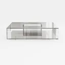 Designed to embody minimalist principles, drawing inspiration from the need to keep spaces open and uncluttered. Its sleek, transparent surface catches light beautifully, offering a smooth, cool touch that enhances the airy, spacious feel. Perfect for modern or Scandinavian living rooms, it pairs with marble side tables and metallic lamp bases, elevating decor. A lower shelf provides practical storage, while the lightweight yet sturdy build ensures both elegance and usability.
