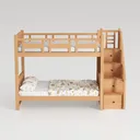 Inspired by maximizing space while blending classic charm, this wooden bunk bed features warm, smooth wood grain and soft linen bedding. Its clean lines and gentle curves make it ideal for kids' rooms or compact apartments, pairing beautifully with soft pastels and playful decor. With sturdy side rails and a safe ladder, it offers comfortable, supportive slumber, saving space without compromising style.