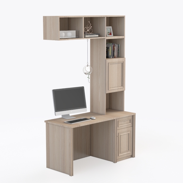 Ideal for modern minimalist studies or cozy bedrooms, this piece seamlessly integrates into spaces where work and relaxation coexist harmoniously. Pair it with soft ambient lighting—like a sleek desk lamp—or a small potted plant on the upper shelves to enhance its inviting, understated charm. The wide desktop offers generous space for a computer monitor, keyboard, and stationery, while integrated drawers and closed cabinets provide hidden storage to keep the area tidy. Open shelving above accommodates books, decorative objects, or daily essentials, balancing easy access with organization. A small hanging decor piece in the center adds subtle visual interest, elevating the design without overwhelming its simplicity. Overall, it’s a versatile addition that merges aesthetic appeal with everyday utility, making it perfect for anyone seeking a functional, stylish workspace.