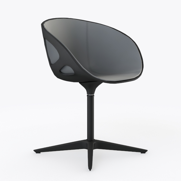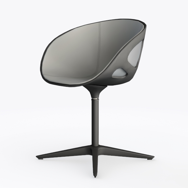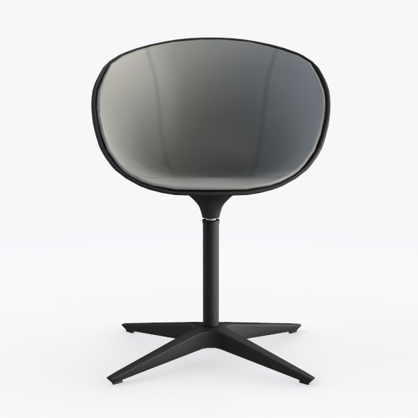 Drawing inspiration from the balance of organic softness and geometric structure, this furniture piece merges modern minimalism with subtle functionality. The chair’s defining feature is its gently curved backrest, crafted from a smooth, matte gray material that feels cool yet inviting to the touch. Its sleek surface catches light in soft, diffused reflections, casting delicate shadows that enhance its sculptural, almost floating appearance, while the black metal base—with its angular, star-shaped legs—adds a grounded, industrial edge. The legs extend outward with precision, ensuring stability without overwhelming the chair’s lightweight, airy feel.