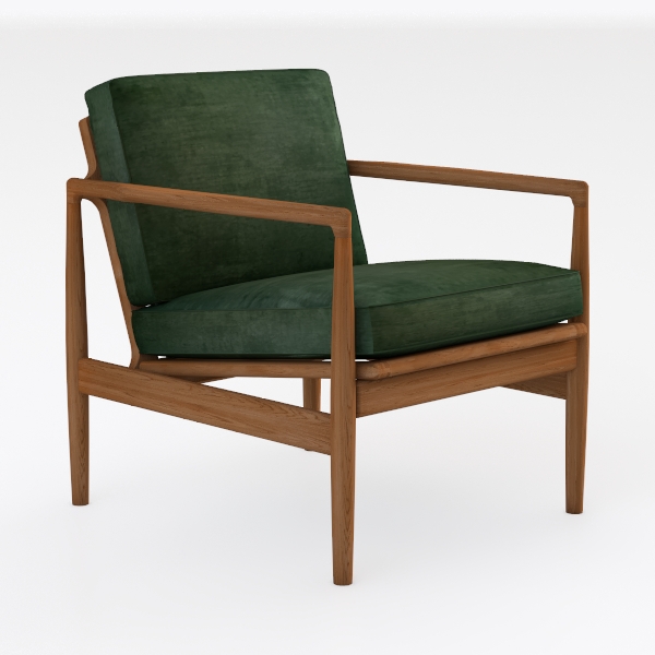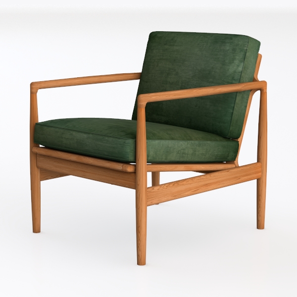 Embrace a touch of modern elegance with this beautifully designed armchair, where inspiration draws from the natural earthiness of sustainable materials. The rich, deep green upholstery offers a sense of tranquility and sophistication, while the smooth wooden frame adds a warm, organic feel. The textural contrast between the plush fabric and the sleek wood creates a visually striking statement that invites comfort.