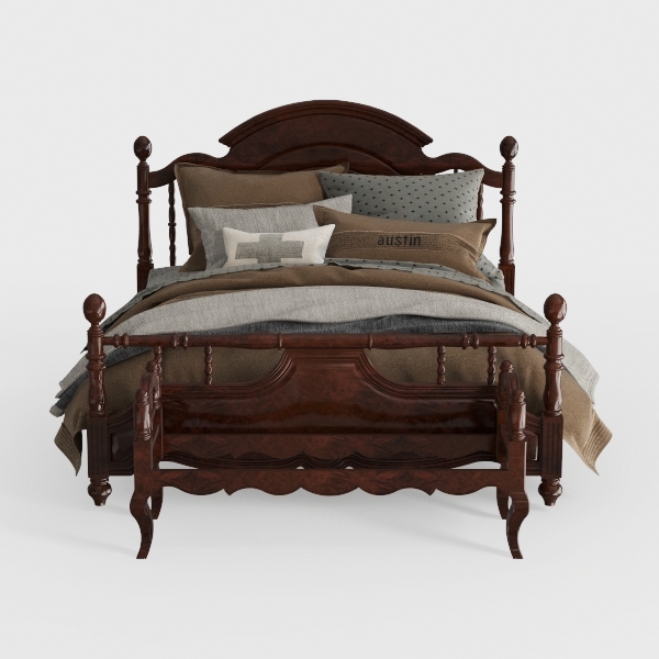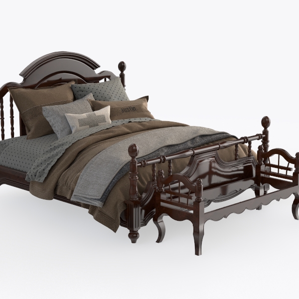 Crafted with a nod to timeless craftsmanship, this piece draws inspiration from the warmth of classic design, blending traditional silhouettes with modern comfort. Its rich, dark wood finish—warm and inviting—boasts a smooth, polished surface that reveals subtle grain patterns, adding depth to its appearance. Intricate carvings along the headboard and footboard, curved and scalloped, enhance its elegant silhouette, while the sturdy wooden frame ensures stability and durability, making it a lasting centerpiece.
