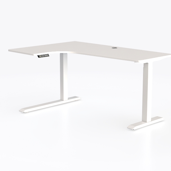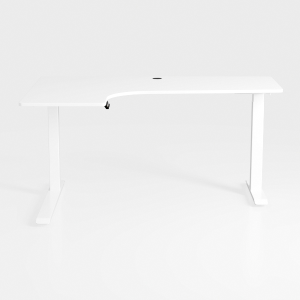 This piece embodies minimalist functionality, drawing inspiration from the balance of aesthetic appeal and practical workspace needs. The smooth, matte white surface feels cool and firm to the touch, with a subtle sheen that reflects light softly, creating an airy, uncluttered visual effect. Its L-shaped structure adds a dynamic, space-efficient dimension, with clean, straight lines that complement modern interiors without overwhelming them.