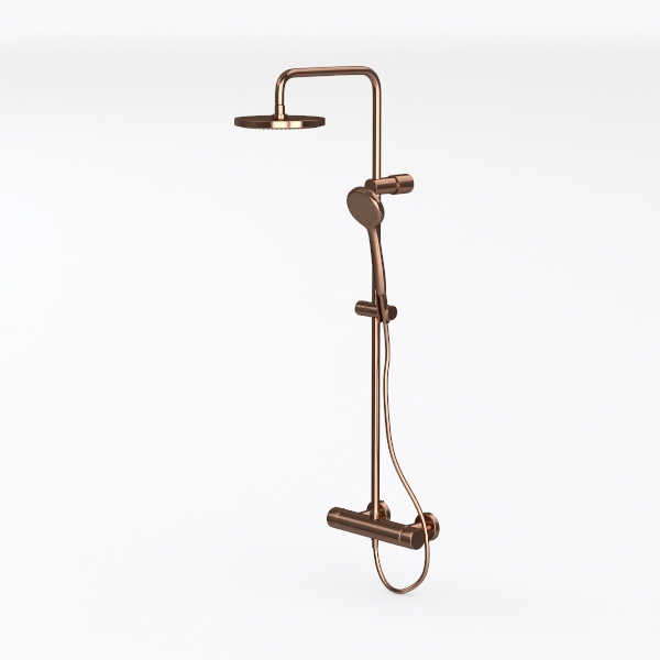 Premier Modern European Style Exposed Pipe Shower System with Single Handle Lever, 4 Inch Rainshower Head and Handheld Shower Wand, in Vintage Yellow Bronze Finish