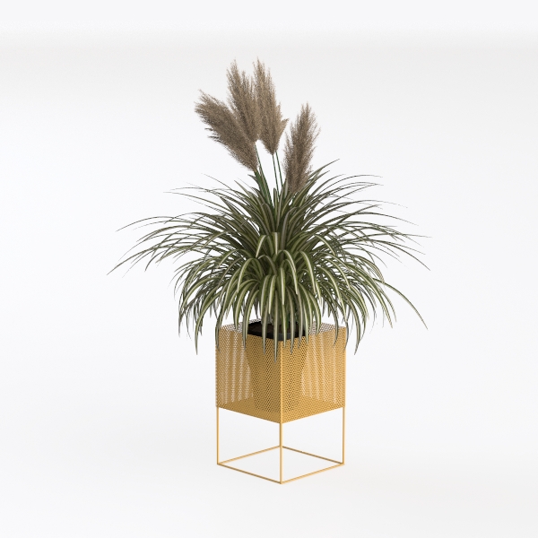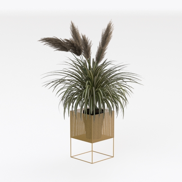 This lush indoor plant embodies a harmonious blend of natural vitality and modern design, drawing inspiration from the desire to bridge the outdoors with interior spaces. Its long, slender leaves cascade gently, with a rich deep green hue accented by delicate light green stripes, creating a textural contrast that feels both soft to the touch and subtly structured. At the top, fluffy, light beige plumes rise gracefully, adding a whimsical, airy quality that balances the plant’s grounded foliage.