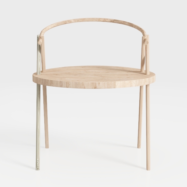 Crafted with a focus on organic simplicity, this piece draws inspiration from the interplay of natural curves and minimalist design, echoing the soft arcs of wind-shaped branches or the clean lines of mid-century furniture reimagined for modern spaces. The tabletop, crafted from solid oak with warm, visible grain patterns, feels surprisingly tactile—cool to the touch yet inviting, its smooth surface catching light gently to highlight the wood’s inherent texture. The curved backrest, integrated into the frame, adds a subtle, functional element, while the slender legs, a mix of matte metal and natural wood, balance the design with lightweight stability, avoiding bulk and keeping the piece feeling airy.