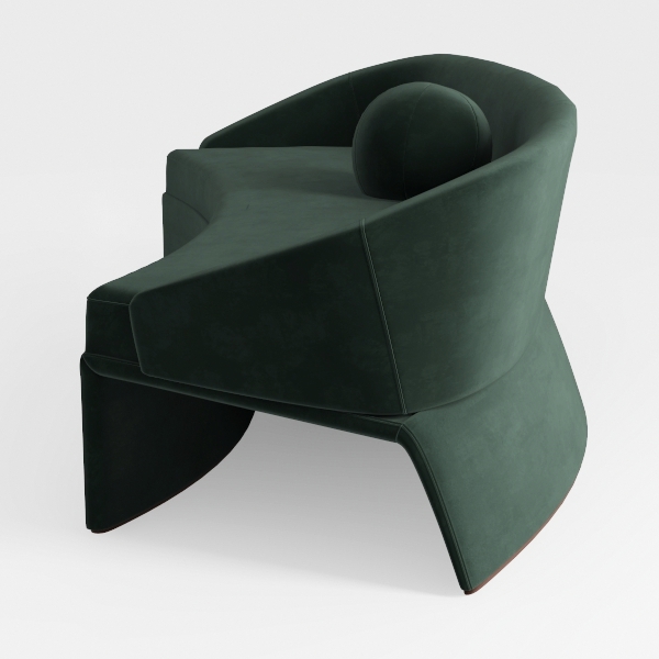 Inspired by modern minimalism, this unique armchair combines organic curves with bold geometric lines, creating a striking focal point for any living space. The deep green upholstery exudes a sense of tranquility, while the soft, textured finish invites you to relax and unwind. Its innovative design not only catches the eye but also enhances comfort, thanks to the generous seating area that supports a cozy lounging experience.
