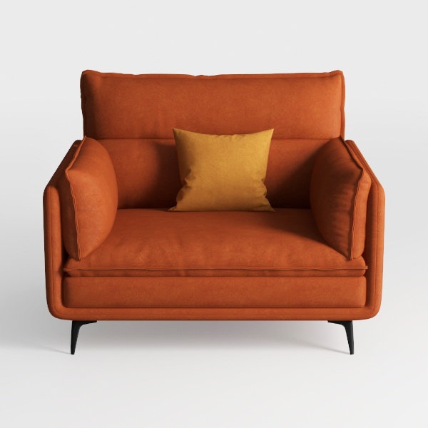 Introducing a vibrant orange armchair that embodies a modern yet cozy design aesthetic. Inspired by mid-century style, this piece captures the warmth of home with its inviting color and soft, textured fabric. The chair features plush cushions that provide not just comfort but also a tactile delight, encouraging you to sink into relaxation.