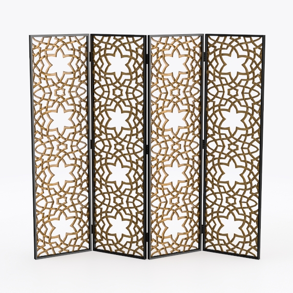 Elegant and functional, this room divider emerges as a sophisticated addition to any home. Its design draws inspiration from traditional geometric art, merging ancient pattern motifs—think intricate star and lattice designs—with contemporary minimalism, transforming classic craftsmanship into a modern statement piece.