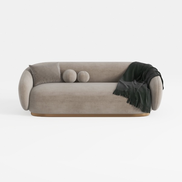 Immerse yourself in the sophisticated charm of this elegant sofa, designed to be a statement piece in any contemporary living space. Inspired by modern minimalism, its smooth, rounded lines create a sense of comfort and calm, making it an ideal focal point for relaxation. The soft, plush texture invites you to sink in and unwind, while the neutral beige color palette exudes warmth and versatility, effortlessly blending with various decor styles.