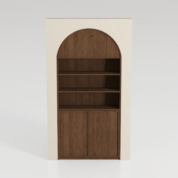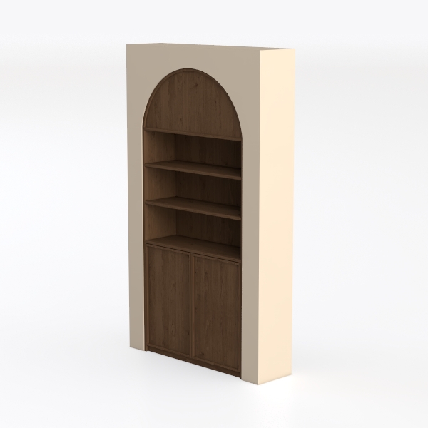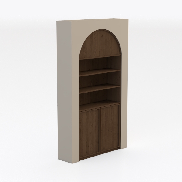 Inspired by the soft curves of classic architectural archways, this piece merges traditional warmth with modern simplicity, creating a focal point that feels both timeless and fresh. The deep, warm wood grain wraps across its surface, with a smooth, slightly matte finish that catches light gently, while the arched top softens the rigid lines, balancing the piece’s structure with a touch of organic elegance. The light, neutral backdrop contrasts subtly, making the rich brown tones stand out without overwhelming the space.