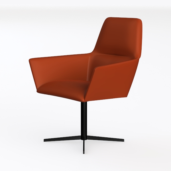 Echoing the balance of organic fluidity and architectural sharpness, this lounge chair finds inspiration in the interplay of natural curves and structured minimalism, as seen in the sleek lines of modernist furniture and the soft undulations of sculptural art. Its vibrant terracotta upholstery, with a smooth, slightly matte finish, feels surprisingly tactile—warm and inviting to the touch, while catching light gently to create subtle depth across its contoured back and generously sized seat.