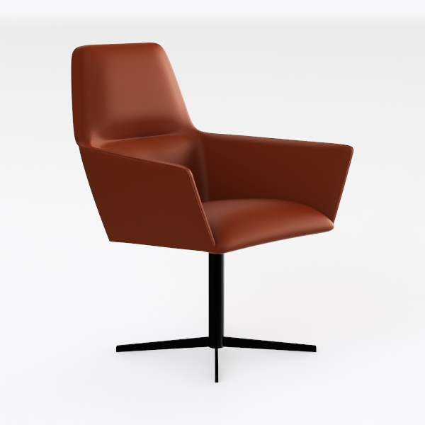 Designed to anchor both contemporary and mid-century modern spaces, it pairs effortlessly with light-toned wooden coffee tables and neutral sofas, or adds a bold focal point to industrial-style rooms when complemented by black metal side tables and raw linen rugs. The black metal cross-base, with its angular, stable legs, supports a seamless 360-degree swivel, making it practical for dynamic use—whether for reading, working, or casual gatherings.