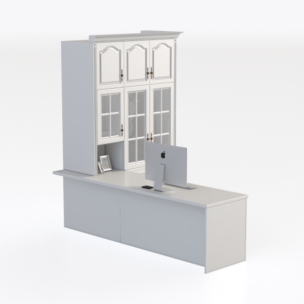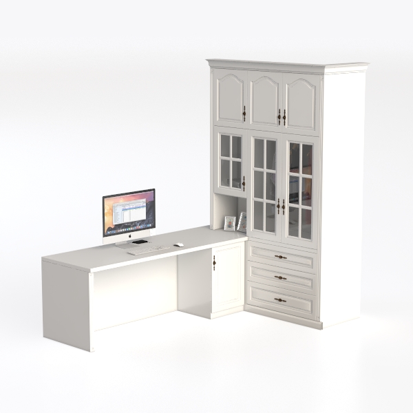 Crafted with a blend of classic charm and modern practicality, this integrated furniture unit draws inspiration from timeless European design, balancing simplicity with thoughtful functionality. Its pristine white surface, with soft matte texture, feels cool and refined to the touch, while the warm wood grain peeking through adds subtle depth. The clear glass-paneled doors allow glimpses of stored items, creating a dynamic interplay of light and shadow that elevates visual interest, while the vintage-inspired brass handles introduce a touch of understated luxury.
