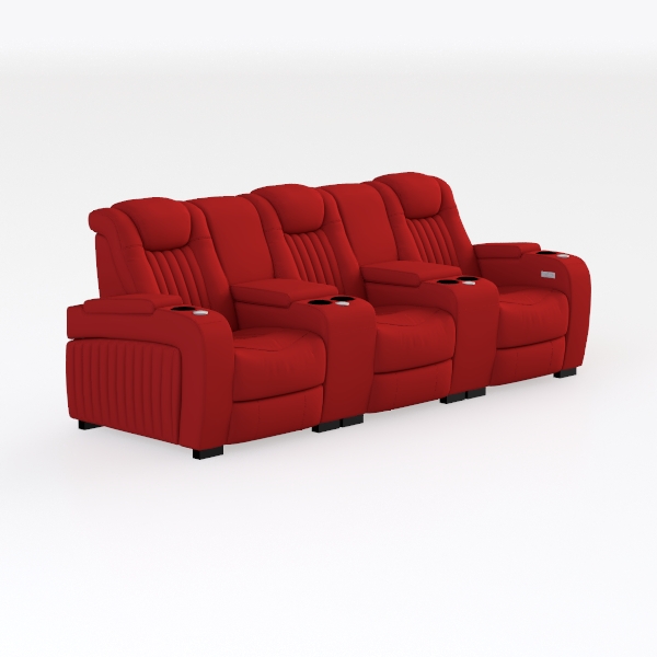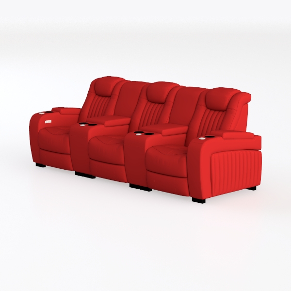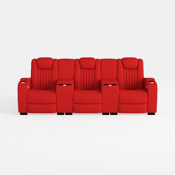 Seatcraft Diamante - Home Theater Seating - Living Room - Power Recline - Italian Leather - Powered Headrests - Cupholders - USB Charging - Ambient Lighting - Arm Storage, Red, Row of 3