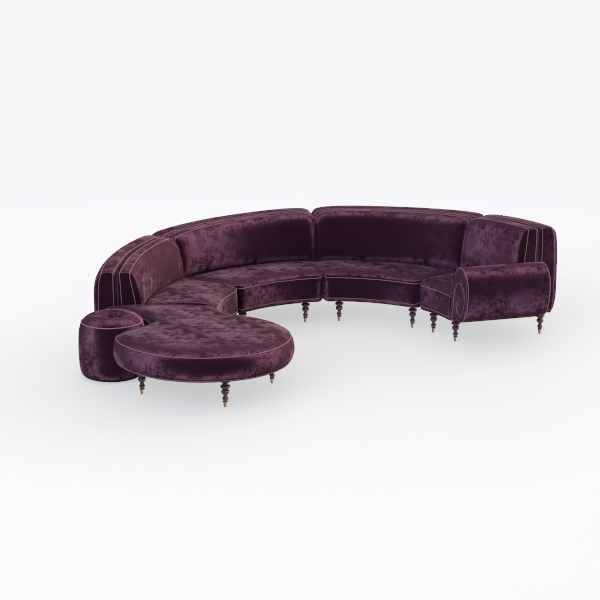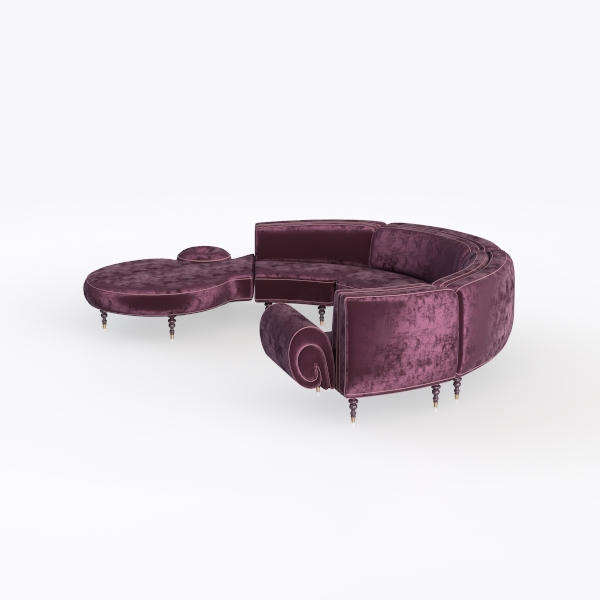 The design of this enchanting sofa draws inspiration from modern elegance and luxurious comfort. Its rich, deep purple hue exudes sophistication, while the soft velvet upholstery invites a tactile experience that is both cozy and inviting. The unique shape not only serves as a captivating focal point in any living space, but also ensures ample seating for gatherings, making it an ideal addition to contemporary interiors.