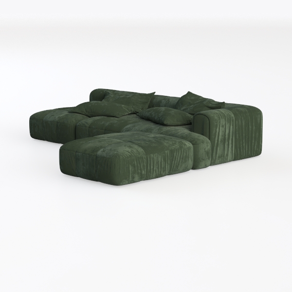 Inspired by contemporary design trends, this modular sofa is a striking addition to any living space. Its rich, deep green hue evokes a sense of tranquility, while the soft, plush fabric invites you to sink in and relax. The unique texture offers both a visual and tactile experience, making it a standout piece in your home.