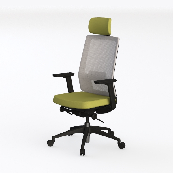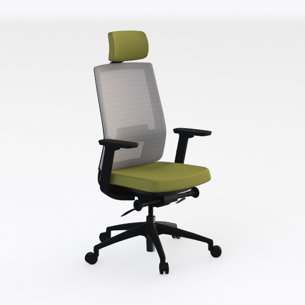 The backrest, crafted from a lightweight, airy mesh material, offers exceptional breathability while maintaining a sleek, semi-transparent silhouette—its delicate texture catching light softly and creating a sense of openness. The seat, upholstered in a soft, moss-green fabric, invites relaxation with its smooth, slightly textured surface, ensuring a comfortable seating experience even during extended hours.