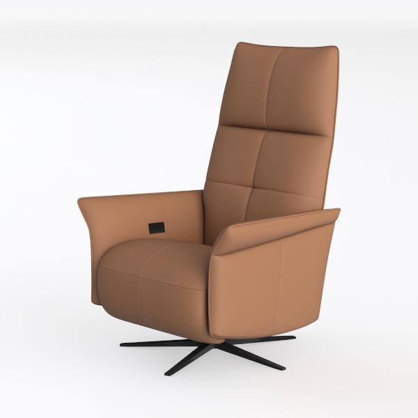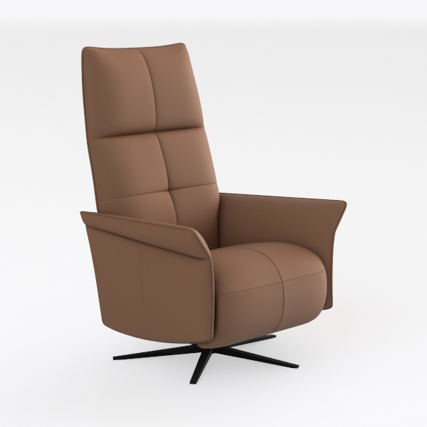 Designed with organic minimalism, drawing from natural textures and clean architectural lines. The warm, terracotta leather feels smooth and supple to the touch, while its structured panels create a balanced, modern silhouette. Perfect for a contemporary living room, it pairs beautifully with marble coffee tables and matte black metal accents. A sturdy swivel base and padded armrests ensure optimal comfort, making it ideal for unwinding after a long day.
