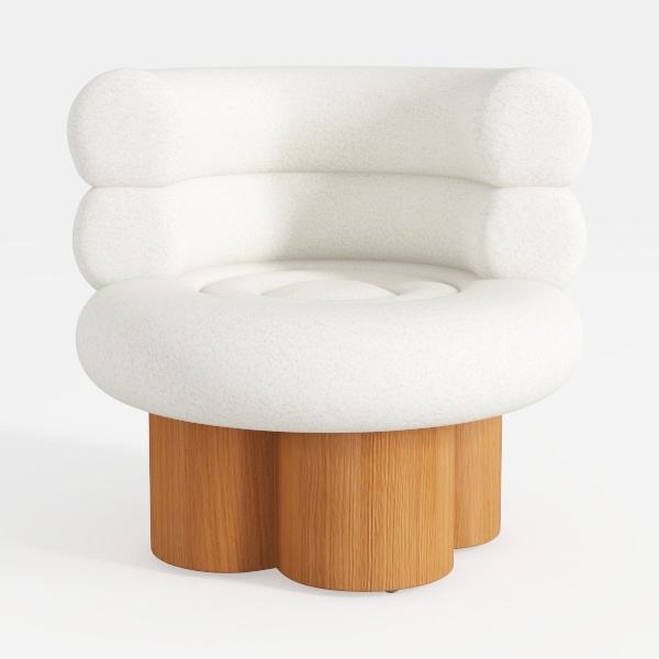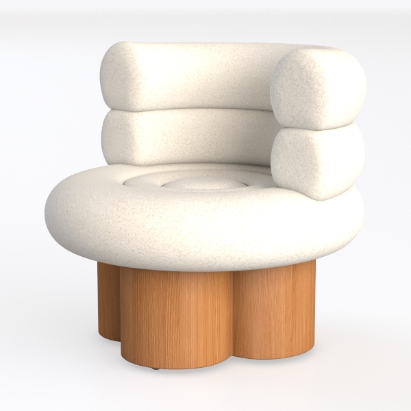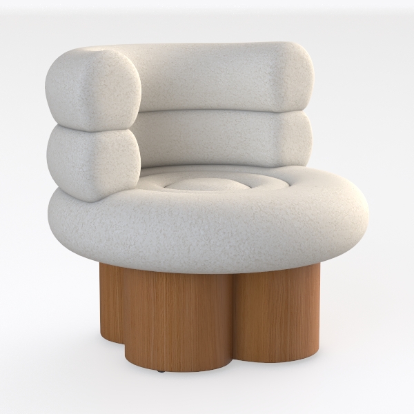 This armchair embodies a serene blend of organic design and tactile comfort, drawing inspiration from natural softness—think the gentle curves of a cloud or the smooth contour of a river stone. Its silhouette is defined by rounded, uninterrupted lines that feel both modern and timeless, eschewing sharp angles for a sense of calm.