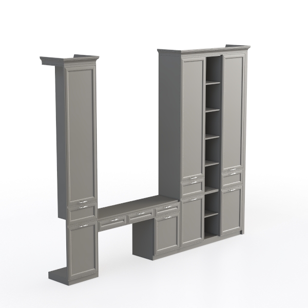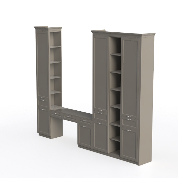Crafted with classic-inspired design, drawing from traditional study aesthetics, blending vintage library charm with modern functionality. Its matte gray finish, with subtle wood grain, feels smooth to the touch, exuding warm, understated elegance that adds depth to any space. Perfect for a vintage study or home office, it pairs beautifully with leather armchairs and brass desk lamps, enhancing a sophisticated, timeless vibe. Boasting closed cabinets, open shelves, and multiple drawers, it offers ample storage for books, stationery, and decor, balancing style with practicality.
