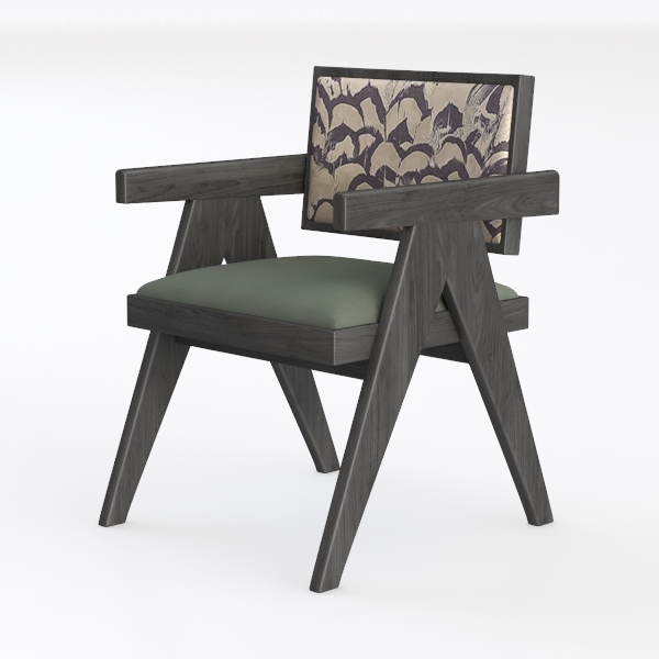 Inspired by natural organic forms, the chair boasts a backrest with an artistic, wave-like pattern that evokes soft, flowing textures. The dark wood frame has a smooth, matte finish, while the sage-green upholstered seat offers a plush, comfortable touch, blending warmth and elegance visually. Ideal for a modern minimalist or contemporary living room, it pairs beautifully with marble side tables and metallic accents. A generously sized seat with sturdy armrests ensures excellent support, making it both stylish and practical for daily use.