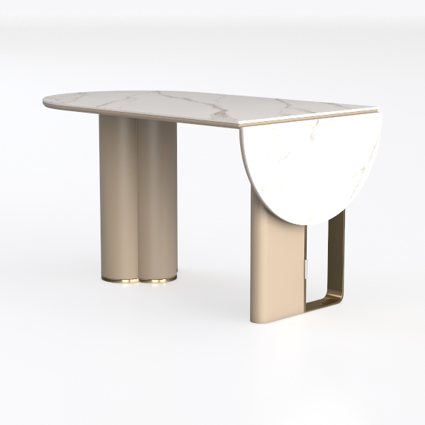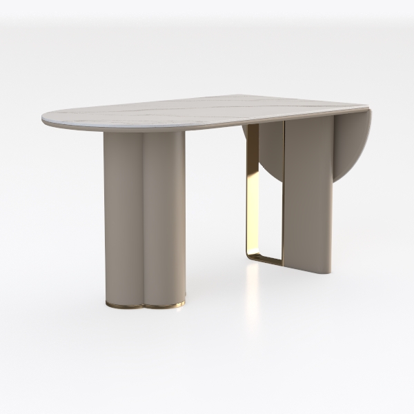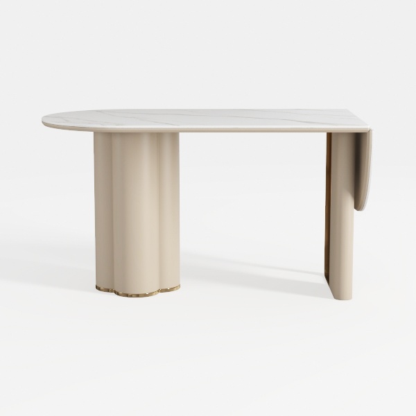 Inspired by organic curves, this piece merges soft lines with refined charm. The sleek marble top contrasts the warm beige base, accented by brushed gold for subtle luxury. Ideal for a modern minimalist dining or workspace, it pairs with neutral textiles and metallic decor. A spacious surface and stable, sculptural base blend style and practicality.