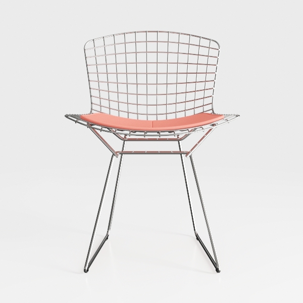 Inspired by mid-century modern minimalism, this chair features a sleek, airy metal frame with a smooth, polished finish. The soft coral upholstered seat adds warm tactile contrast, balancing the cool metallic texture. Ideal for a modern minimalist dining room or living space, pairing beautifully with oak tables and geometric rugs, complemented by warm-toned lighting. Lightweight yet sturdy, its angular legs and contoured seat offer stability and comfort for extended seating.