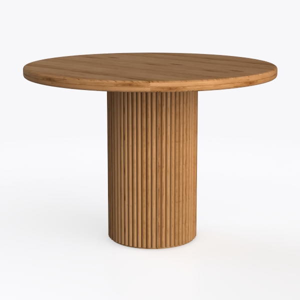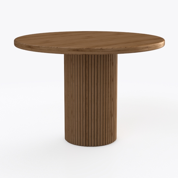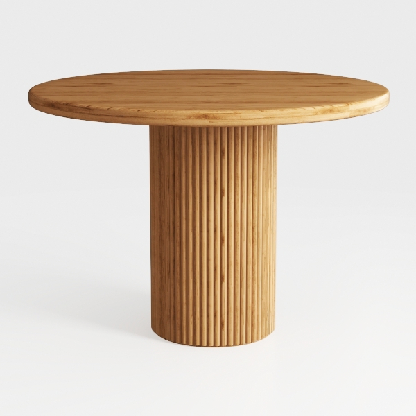 Drawing inspiration from natural tree trunks and modern architecture, this table merges organic warmth with structured elegance. The light oak wood features soft, visible grain, offering a smooth, comforting touch, while the fluted column base adds rhythmic verticality. Ideal for a minimalist living room or dining space, it complements mid-century chairs and marble side tables, with a stable, balanced design supporting daily use and encouraging easy conversation.