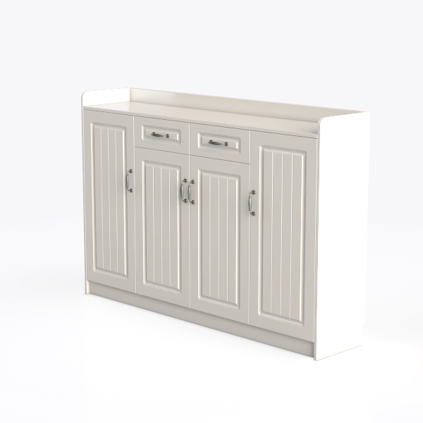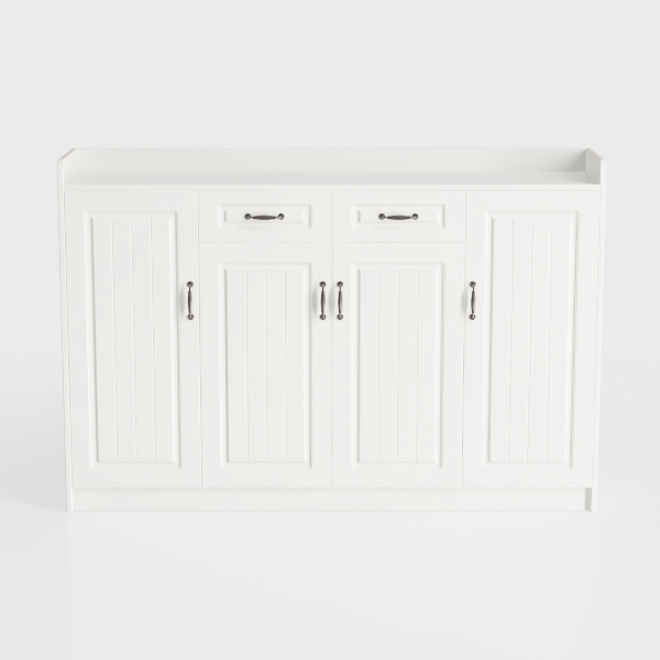 Inspired by minimalist design, this white cabinet blends clean lines with practical storage. Its smooth, cool-to-the-touch surface and bright, uncluttered look create a serene atmosphere. Perfect for modern, Scandinavian, or Japanese living rooms, pair it with wooden furniture and soft lighting. Four doors and two drawers provide ample storage, ideal for organizing kitchenware or daily essentials.