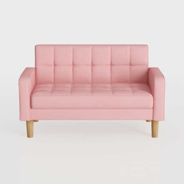 This sofa takes design cues from the soft, nurturing energy of natural elements—think the gentle blush of dawn or the delicate hue of a blooming peony—aiming to infuse living spaces with warmth and approachability. Crafted with a plush, velvety upholstery in a muted pink, the texture is surprisingly tactile: light enough to feel airy, yet substantial enough to cradle you in comfort, like sinking into a cloud. The front is subtly tufted, creating small, neat squares that add gentle dimension without clashing with the sofa’s clean, uncluttered lines, while the curved arms invite relaxed resting—whether for your arms or a stack of favorite books. Supported by slender, tapered wooden legs, it balances lightness with stability, making it a versatile fit for various room sizes.