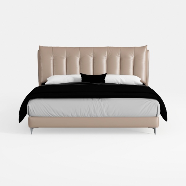 Crafted with mid-century modern charm and contemporary elegance, this bed features a soft, tufted leather headboard in warm beige. Smooth, plush upholstery and clean lines create a calm, sophisticated visual, inviting relaxation. Ideal for minimalist, Scandinavian, or modern bedrooms, it pairs beautifully with wooden nightstands and soft linen. Sturdy metal legs ensure stability, while the padded headboard offers excellent back support for restful sleep.