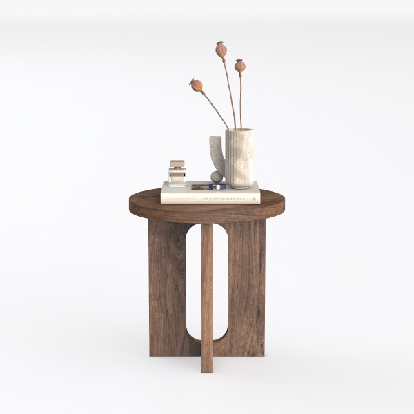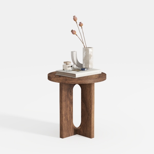 Inspired by minimalist architecture and natural organic forms, this wooden side table features warm, natural texture with smooth lines. Its circular top and unique hollowed base blend elegance and functionality, ideal for modern minimalist or Scandinavian living rooms, pairing beautifully with soft rugs, sleek sofas, and metallic decor. The spacious surface holds small items like books and vases, ensuring both style and practicality.