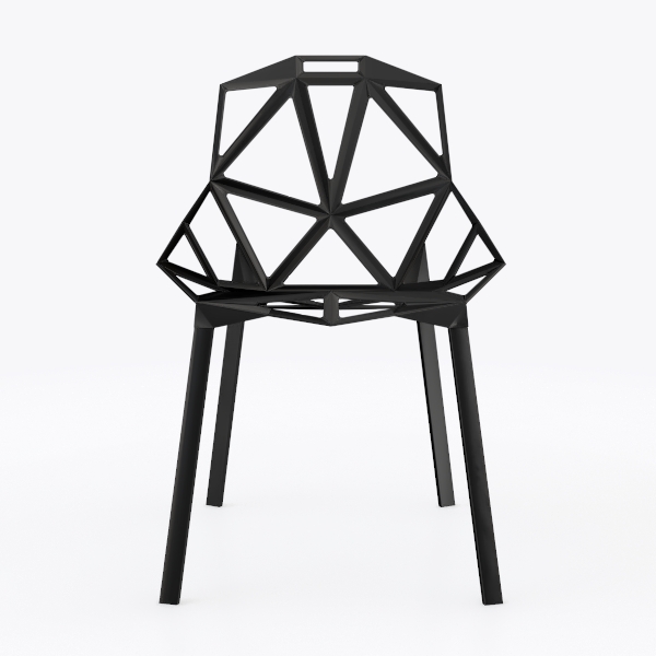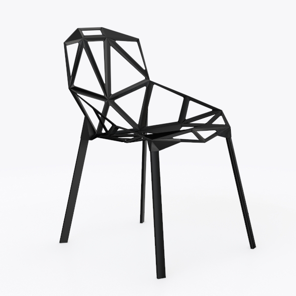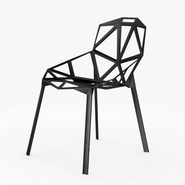 Inspired by architectural latticework and crystalline formations, this chair features a sleek matte black surface with light-catching geometric cutouts, offering a cool, smooth touch and a light yet striking presence. Its slender, angled legs add modern flair, ideal for minimalist, industrial, or modern-luxe dining rooms/entryways, paired with polished marble or warm wooden pieces. Lightweight yet sturdy, with a contoured back for subtle lumbar support, ensuring comfortable seating.