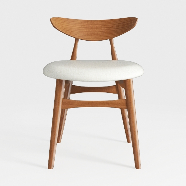Inspired by mid-century organic design, this chair blends warm, smooth wood grain with soft, breathable upholstery. Its curved back and tapering legs create a timeless, airy look, ideal for minimalist dining or living spaces. Pair with marble tabletops and matte black lighting for a sleek, modern vibe—generous seat depth and sturdy legs ensure both style and comfort.